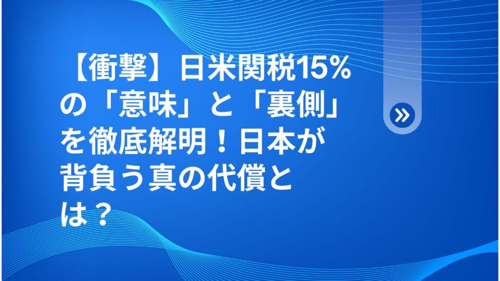 皆さん、こんにちは!健太です🔍 今日は、最近大きく報じられた「日米関税15%合意」について、皆さんの「本当の意味を知りたい!」という知的好奇心を徹底的に深掘りし…