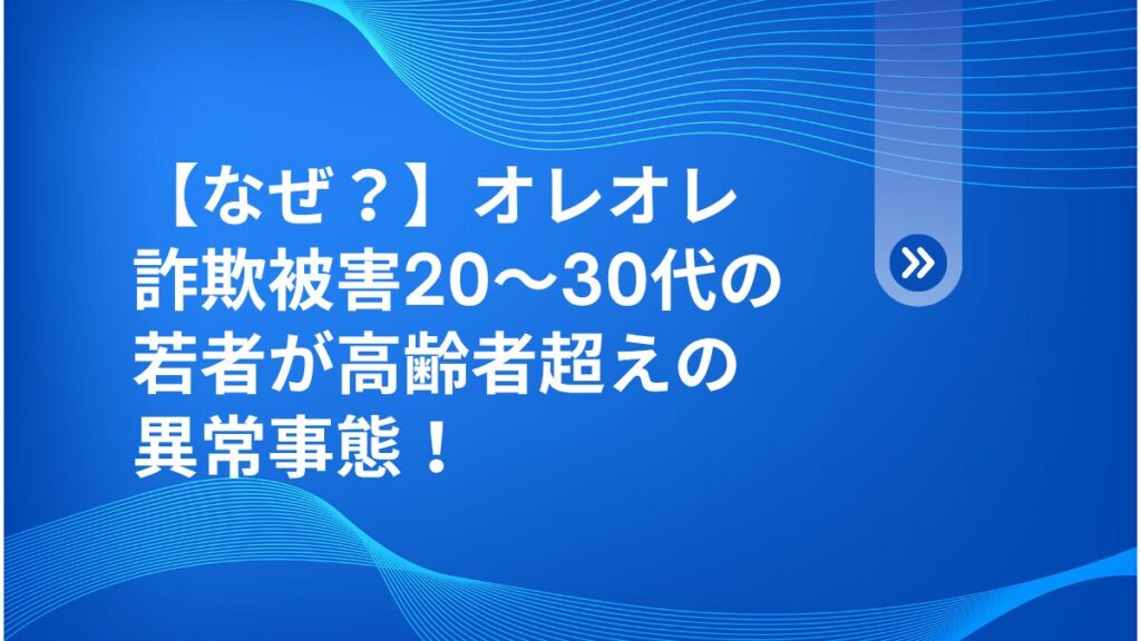 皆さん、こんにちは!健太です。これまで「高齢者の問題」として認識されてきたオレオレ詐欺。しかし今、信じられない事態が起きています。なんと、20〜30代の若者の被…
