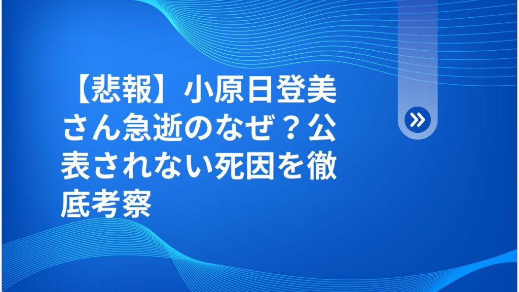 【悲報】小原日登美さん急逝のなぜ?公表されない死因を徹底考察