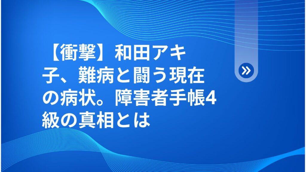 皆さん、こんにちは!健太です。💡「芸能界のご意見番」として、常に強く、パワフルなイメージで知られる和田アキ子さん。しかしその裏で、実は国が指定する難病や度重なる…