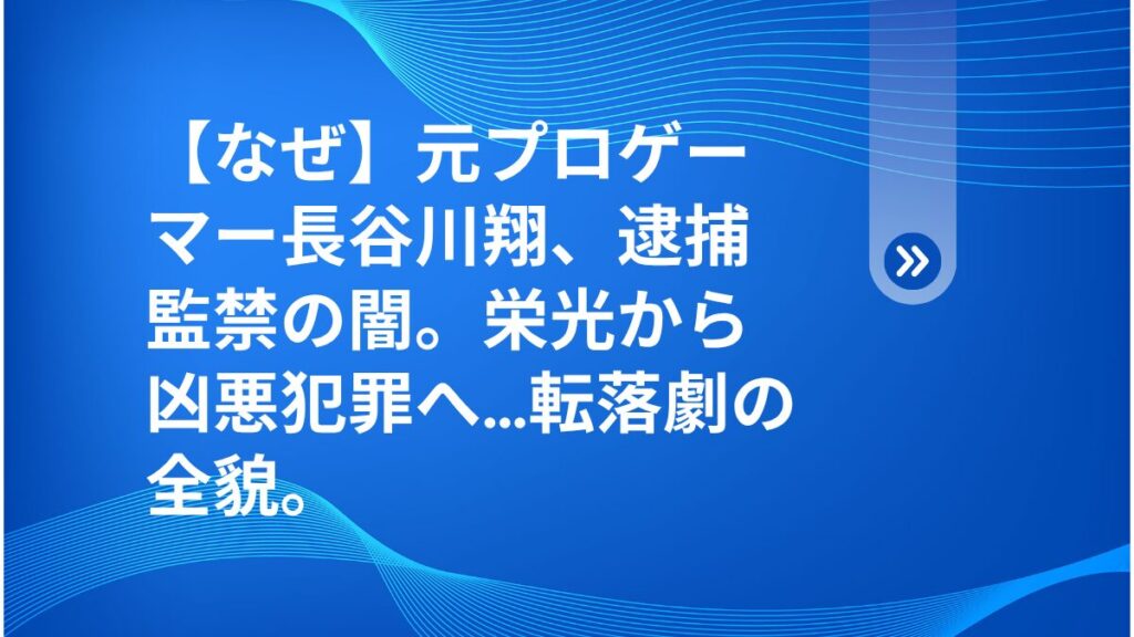 【なぜ】元プロゲーマー長谷川翔、逮捕監禁の闇。栄光から凶悪犯罪へ…転落劇の全貌。