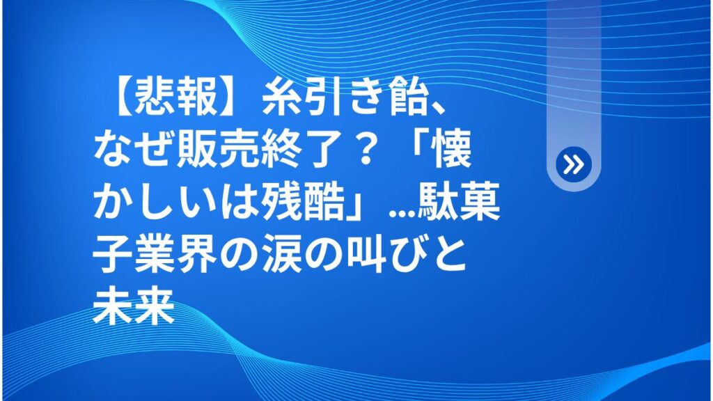 【悲報】糸引き飴、なぜ販売終了?「懐かしいは残酷」…駄菓子業界の涙の叫びと未来