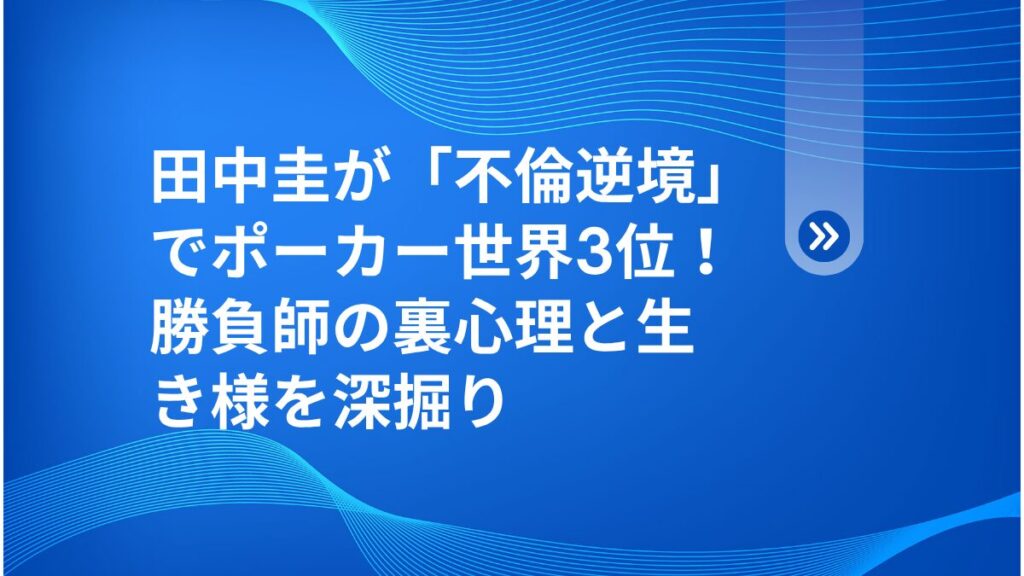 皆さん、こんにちは!健太です🔍 俳優・田中圭さんがラスベガスのポーカー世界大会で3位入賞、賞金1700万円を獲得というニュースが飛び込んできましたね。しかし、そ…