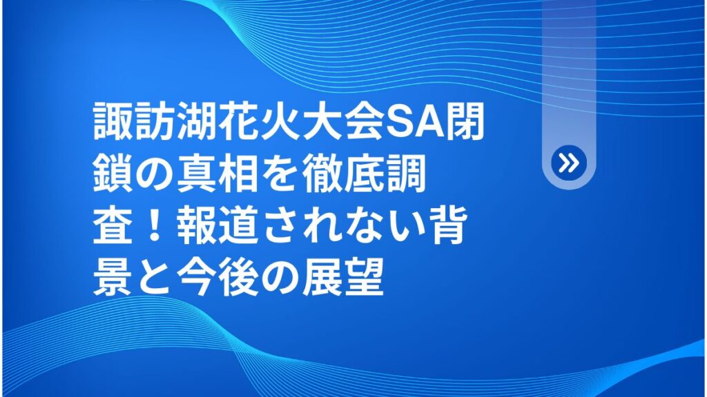 諏訪湖花火大会SA閉鎖の真相を徹底調査!報道されない背景と今後の展望