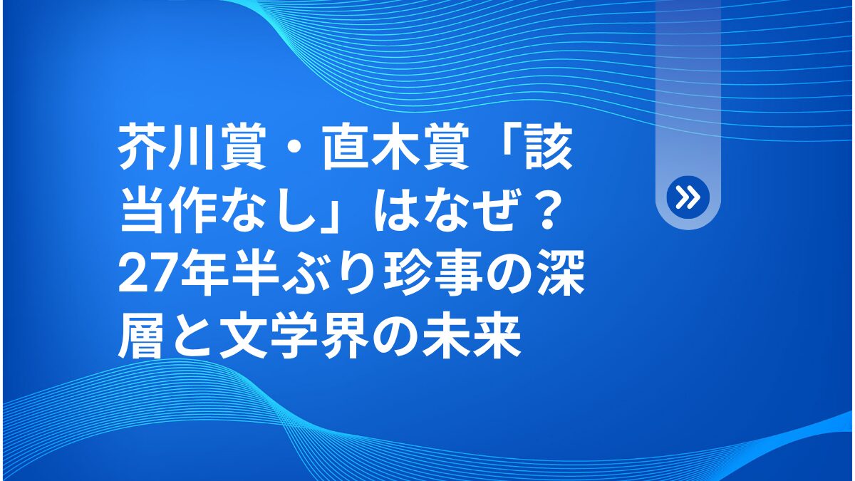 両賞同時での「該当作なし」は、実に27年半ぶり、史上6回目という異例の事態なんです。一体なぜこのような結果になったのか、その深層に迫るべく、今回の記事では選考の裏側や文学界への影響を徹底的に深掘りしていきます🔍