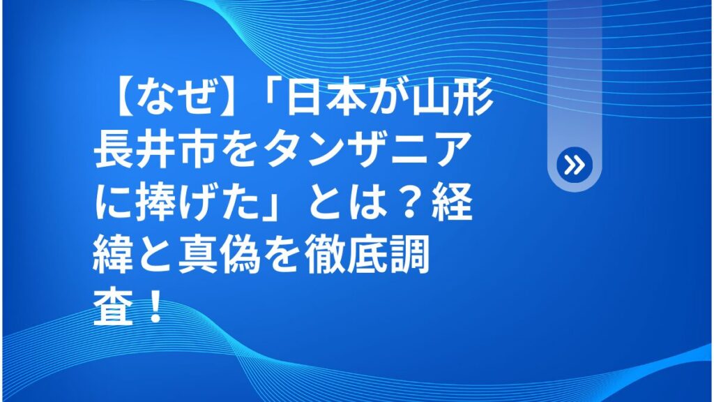 皆さん、こんにちは!探偵の健太です。「日本が山形長井市をタンザニアに捧げた とは 経緯 真偽 調査」というニュース、あなたはどう見ましたか?💡 多くの報道が飛び…