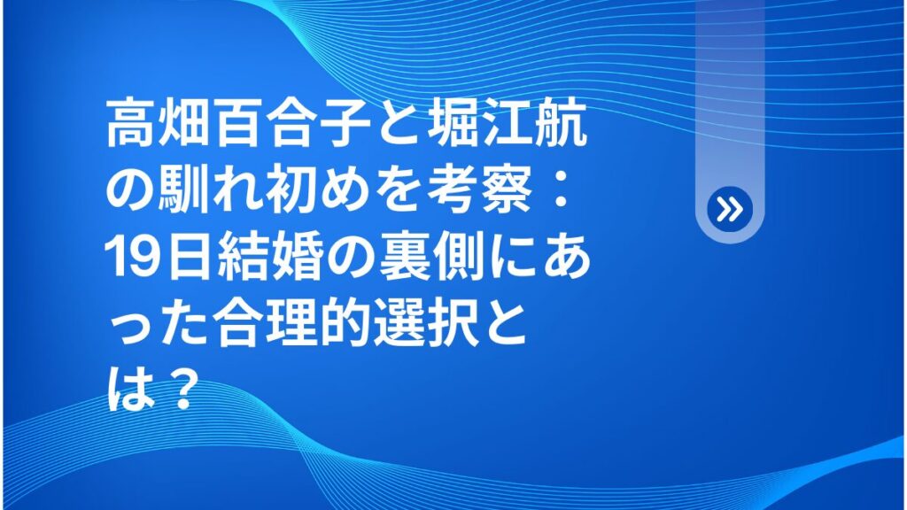高畑百合子と堀江航の馴れ初めを考察:19日結婚の裏側にあった合理的選択とは?