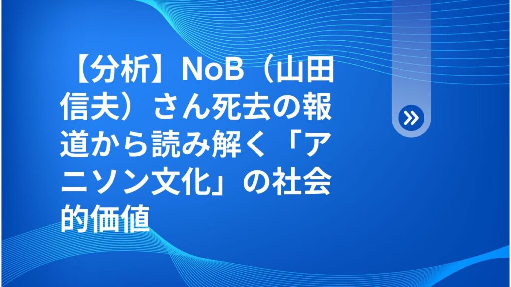 【分析】NoB(山田信夫)さん死去の報道から読み解く「アニソン文化」の社会的価値