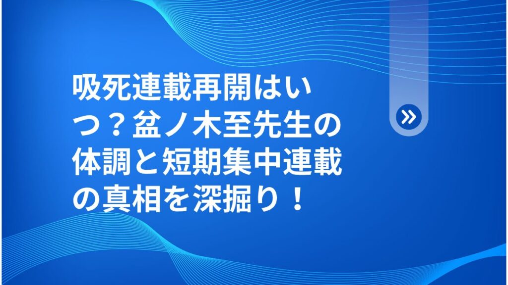 吸死連載再開はいつ?盆ノ木至先生の体調と短期集中連載の真相を深掘り!