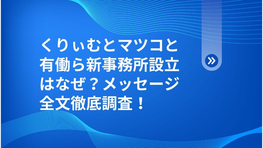 皆さん、こんにちは!健太です🔍 今日は、芸能界で大きな話題となっているニュース、「くりぃむしちゅーとマツコ・デラックスと有働由美子らが新事務所設立」について、そ…