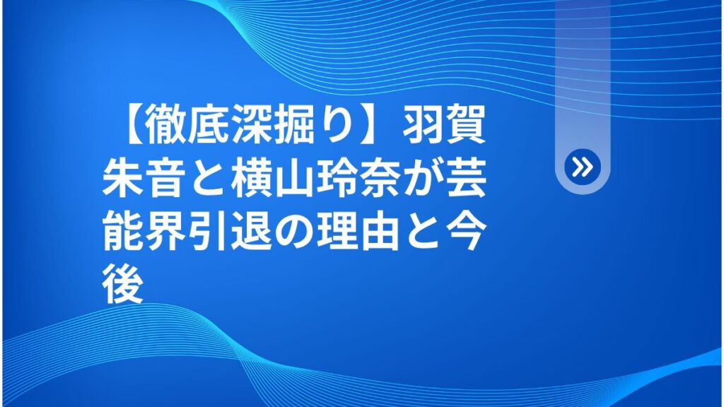 【徹底深掘り】羽賀朱音と横山玲奈が芸能界引退の理由と今後
