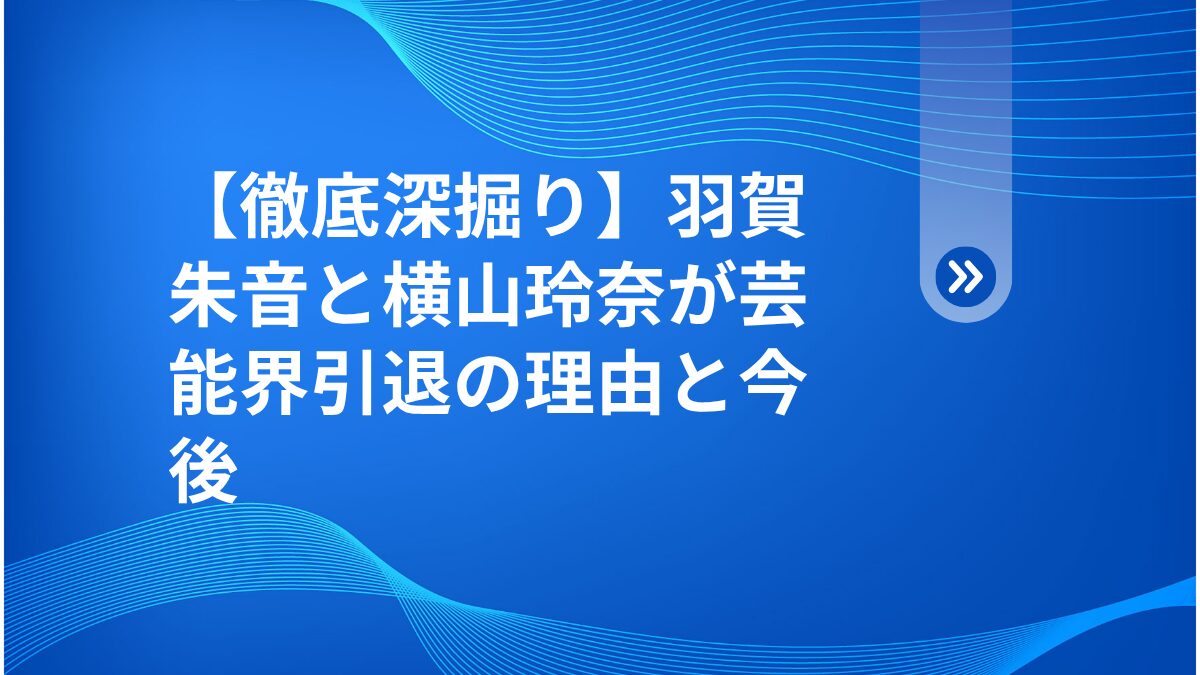 羽賀朱音と横山玲奈、突然の芸能界引退、その真意とは?