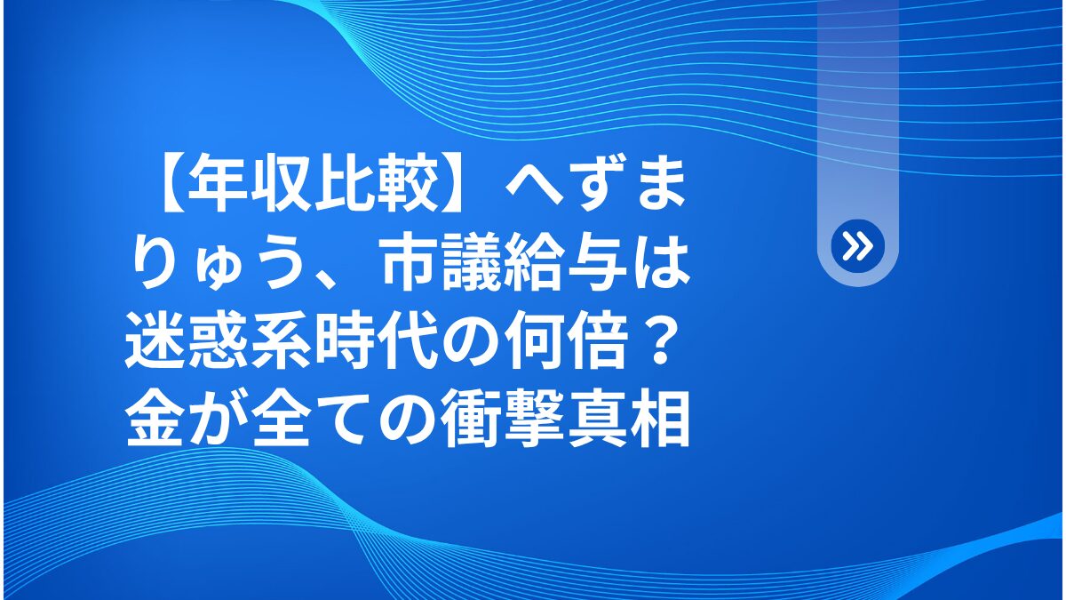 今回は、へずまりゅう氏の市議当選を「収入」という切り口から深掘りしてみました。見えてきたのは、単なる金銭目的ではなく、承認欲求の変化、そして家族の存在という、極めて人間的な動機でした。彼は、年収2440万円の現在地から、あえて年収860万円の「公職」という名の船に乗り換えたのです。🚢