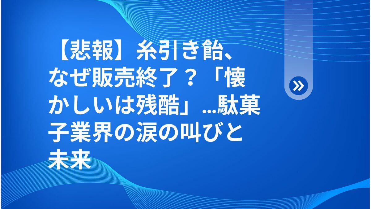 しかし、この問題は糸引き飴だけに限りません。ここでは、私たちの記憶の片隅にある、あの懐かしい味たちが、実は次々と姿を消しているという厳しい現実を突きつけます。これは一個社の問題ではなく、業界全体を揺るがす大きなうねりなのです。📊