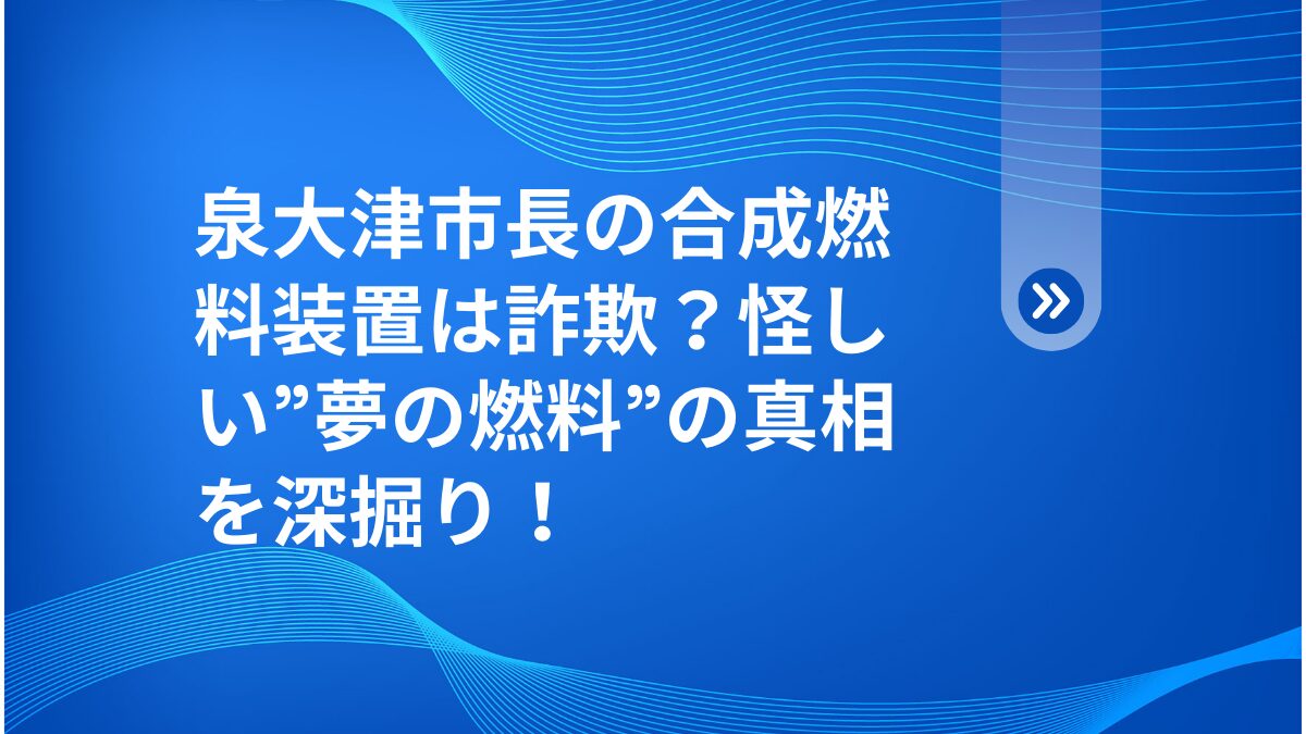 泉大津市長の合成燃料装置は詐欺?怪しい”夢の燃料”の真相を深掘り!