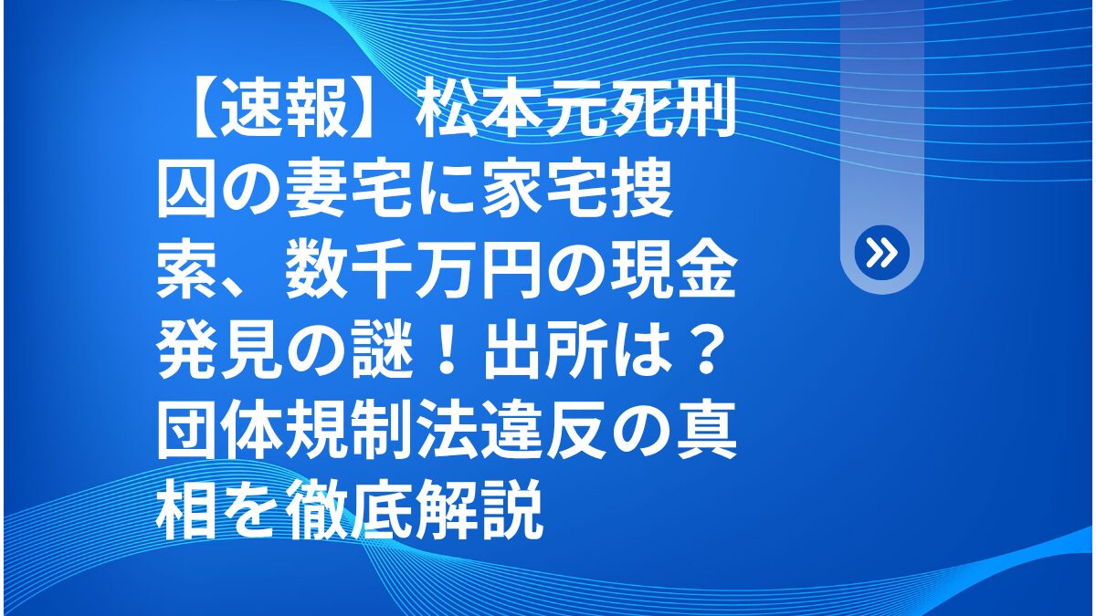 【速報】松本元死刑囚の妻宅に家宅捜索、数千万円の現金発見の謎!出所は?団体規制法違反の真相を徹底解説
