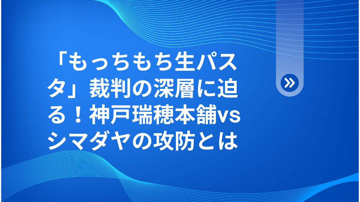 今回は、神戸瑞穂本舗とシマダヤの「もっちもちの生パスタ」裁判について、その背景から法的争点、そして業界への影響まで、健太の視点から深掘りしてきました🔍。
