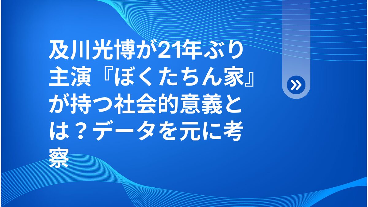今回の分析で明らかになったのは、及川光博さんの21年ぶり主演作『ぼくたちん家』が、単なるトレンドドラマではなく、現代社会が抱える多様性や孤独の問題に、正面から向き合う挑戦的な作品であるということです。🔍