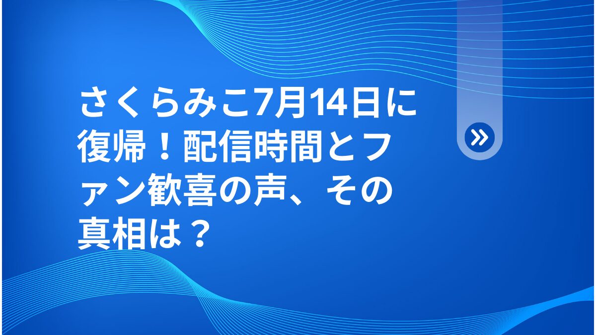 さくらみこ7月14日に復帰!配信時間とファン歓喜の声、その真相は?
