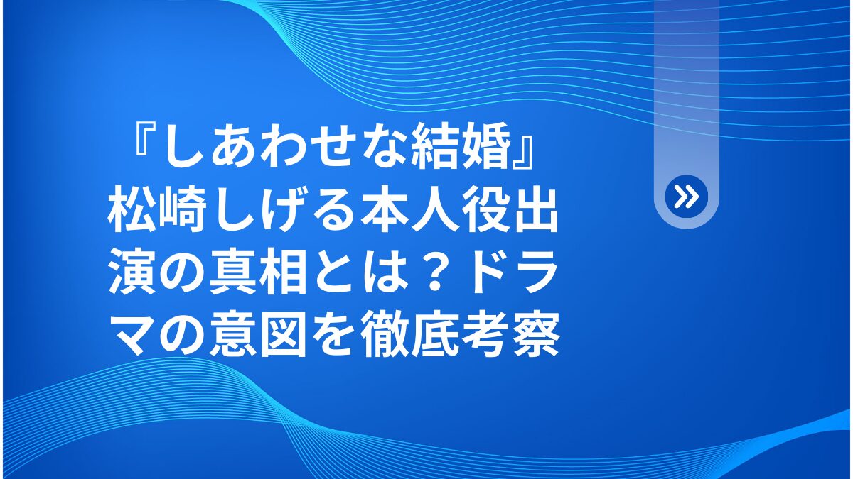 皆さん、こんにちは!健太です。テレビ朝日系列のドラマ『しあわせな結婚』で、松崎しげるさんが本人役としてゲスト出演したニュース、皆さんはどう見ましたか?💡