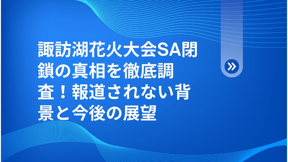 皆さん、こんにちは!健太です。今年の諏訪湖花火大会で、これまで花火観覧の「穴場」として知られていた諏訪湖SAが全面閉鎖されるというニュース、皆さんどう見ましたか?しかし、その裏には単なる混雑対策では片付けられない、より深い事情があるとしたら…💡