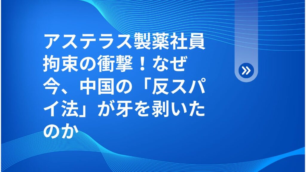 皆さん、こんにちは!「健太のトレンド探偵局」へようこそ。今回は、日本中が注目したアステラス製薬の日本人拘束事件について、深掘りしていきます。 なぜ長年中国で活躍…