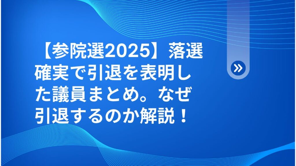 【参院選2025】落選確実で引退を表明した議員まとめ。なぜ引退するのか解説!