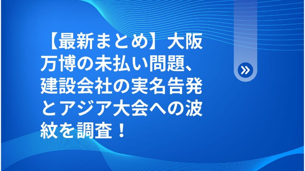 皆さん、こんにちは!健太です🔍 今日は、今世間を騒がせている大阪万博の「未払い問題」について、その深層を徹底的に掘り下げていきたいと思います。 なぜ、こんな大規…