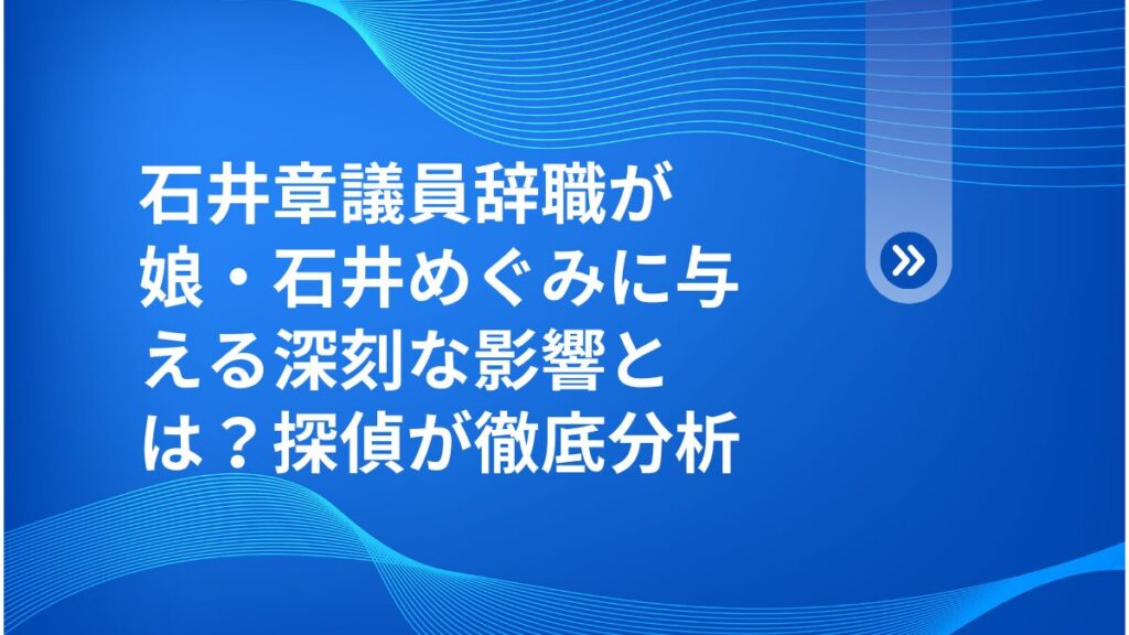 石井章議員辞職が娘・石井めぐみに与える深刻な影響とは?探偵が徹底分析