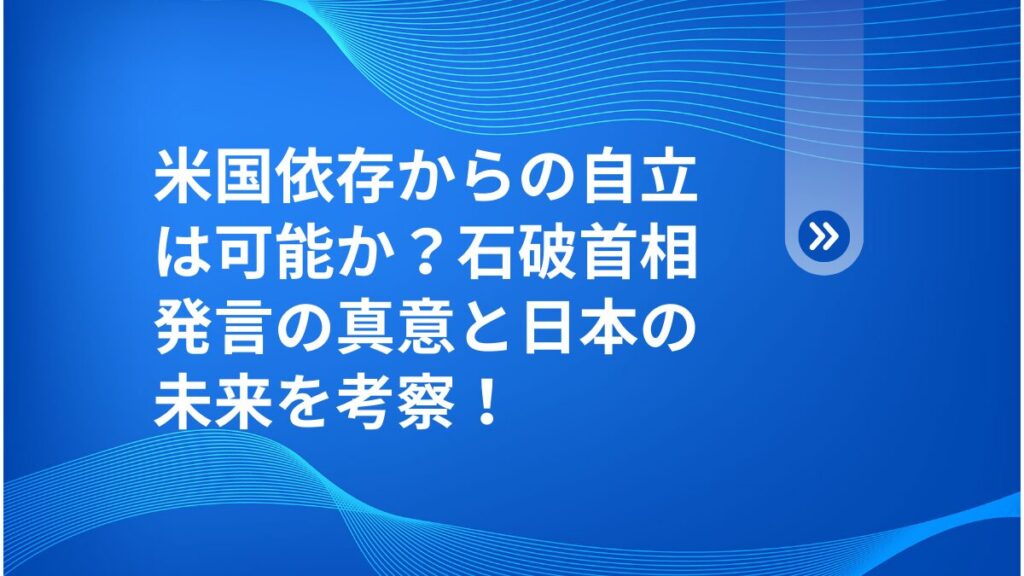米国依存からの自立は可能か?石破首相発言の真意と日本の未来を考察!