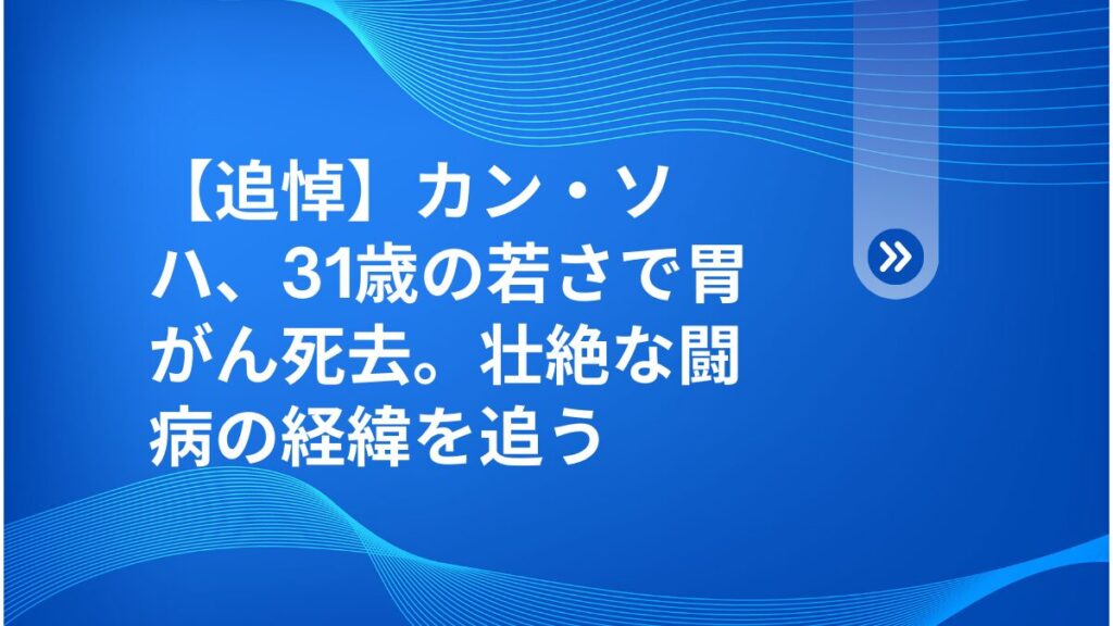 【追悼】カン・ソハ、31歳の若さで胃がん死去。壮絶な闘病の経緯を追う
