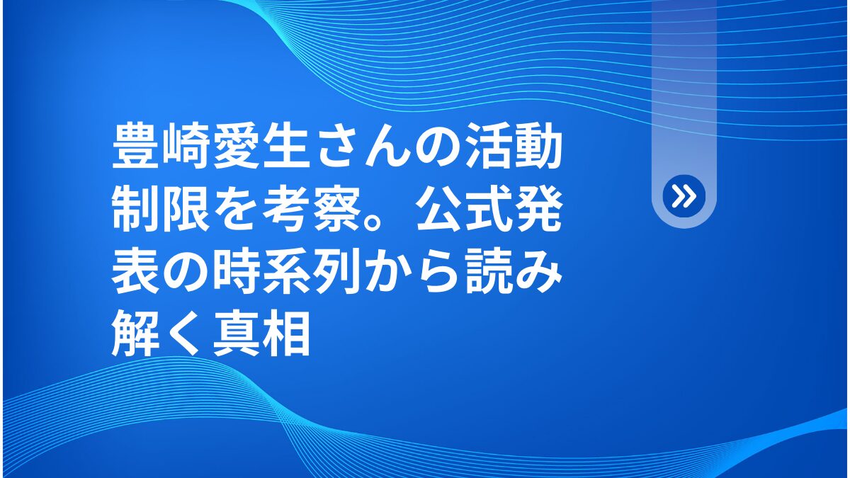 この記事では、公開された情報と時系列を徹底的に分析し、なぜこのタイミングで発表されたのか、そして「活動制限」という言葉に隠された本質とは何か、その深層までを深掘りします。🔍