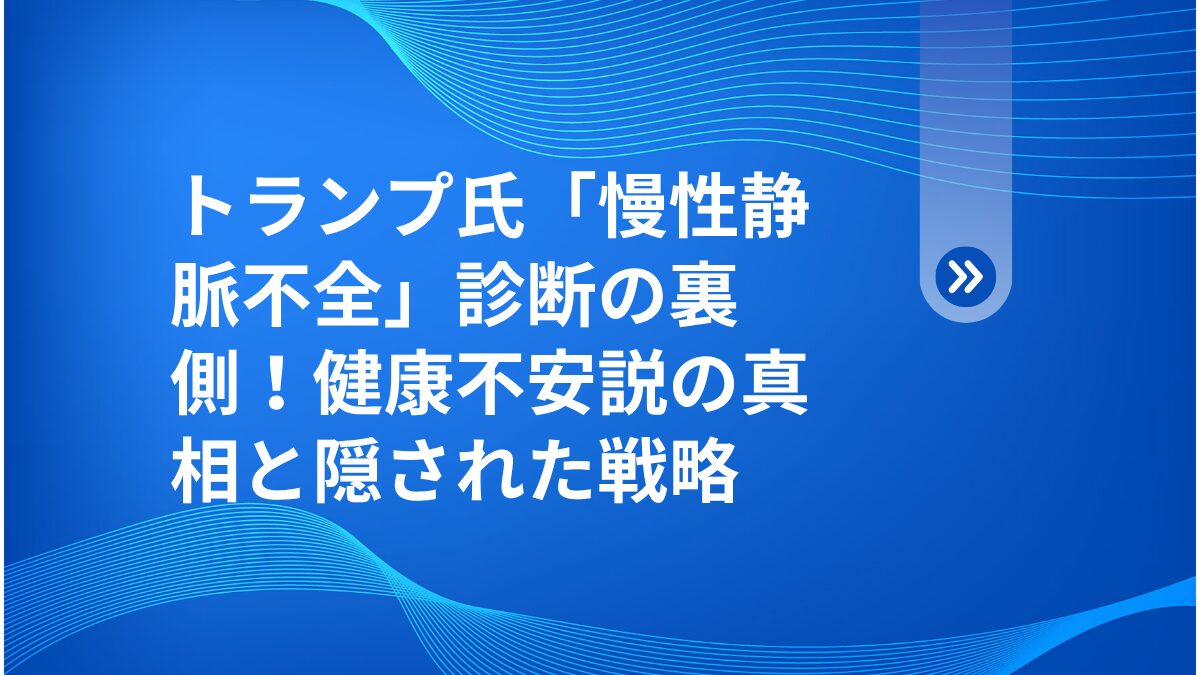 皆さん、こんにちは!健太です🔍 今日は、先日報じられたトランプ氏の「慢性静脈不全」診断について、一般的なニュースでは語られないその深層に迫っていきたいと思います。なぜ今、この情報が公表されたのでしょうか?🤔