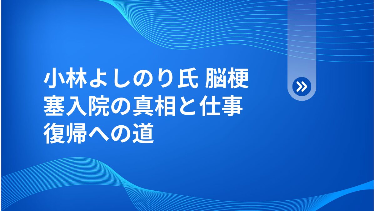 小林よしのり氏の脳梗塞入院という出来事は、個人的な健康問題に留まらず、多忙な現代人が直面する健康リスクを浮き彫りにしました。🔍