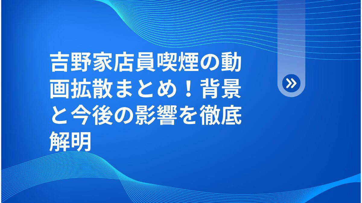 皆さん、こんにちは!健太です。今回注目するのは、先日SNSで大きな波紋を呼んだ「吉野家店員の厨房喫煙問題」です。この衝撃的な動画は、なぜこれほどまでに拡散され、私たちの関心を引くのでしょうか?🤔